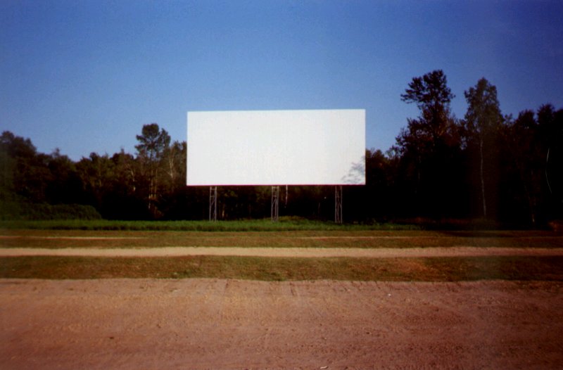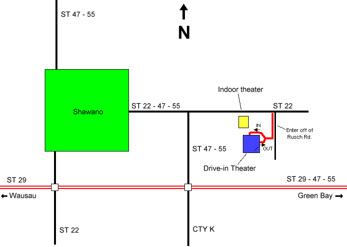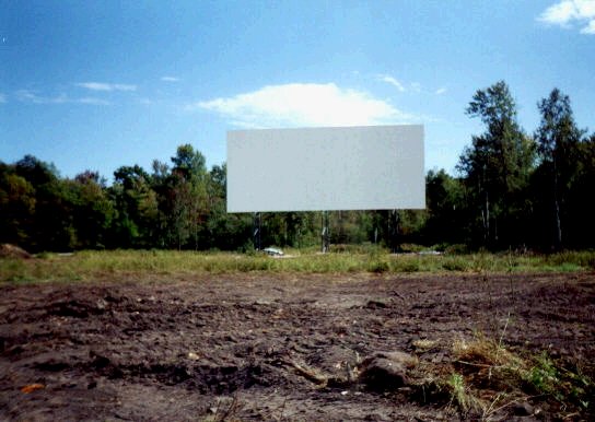 The city of Shawano is getting a drive-in theater again. The theater is located on the east end of town on Hwy 22 behind the existing three-screen indoor theater. The screen is up and the parking lot is graded. The projection and concession building is actually part of the indoor theater. Two windows have been added to the end of the building that will allow the image to be projected to the screen. The distance to the screen is actually over 500 feet.