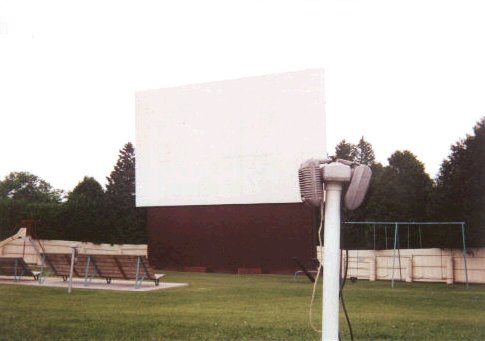This theater is in excellent condition. There are reclined benches at the base of the screen and speakers mounted on poles just behind them for people to relax outside of their cars. There are swings and slides for the kids to play on near the bottom of the screen. If you get the chance to go to Door County, check this fine theater out. They also have T-shirts for sale at the concession stand.
